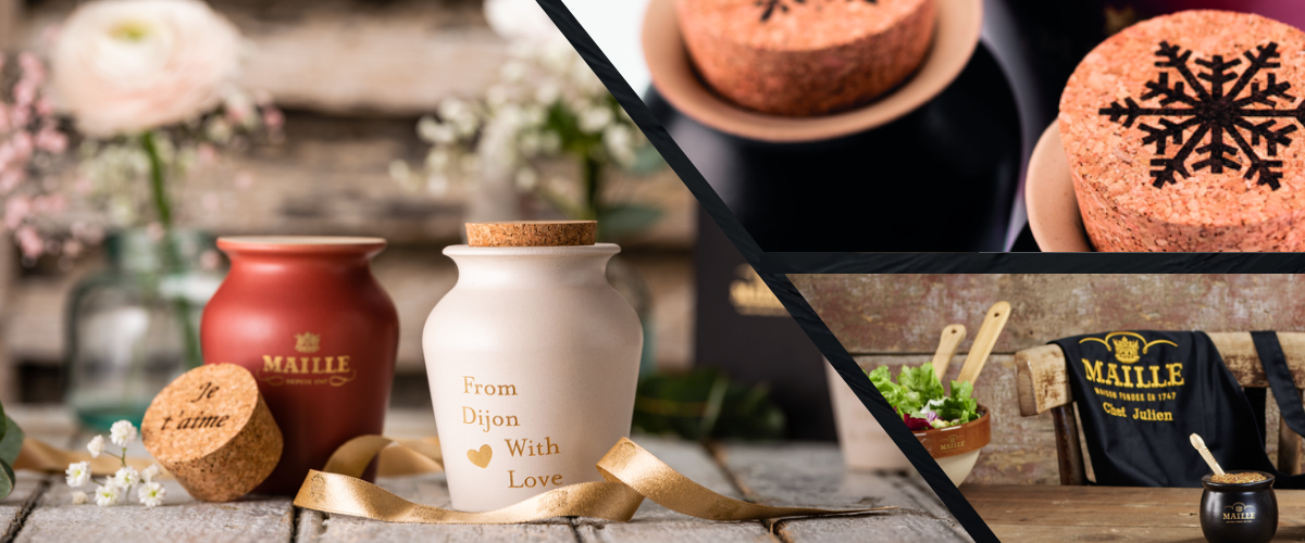 Explorez nos services de personnalisation pour offrir un cadeau empreint d'attention. Pour votre propre plaisir ou pour choyer une personne chère à votre cœur, nos tabliers délicatement brodés et nos pots en grès emblématiques gravés seront des cadeaux intemporels qui sauront ravir tous les passionnés de gastronomie !