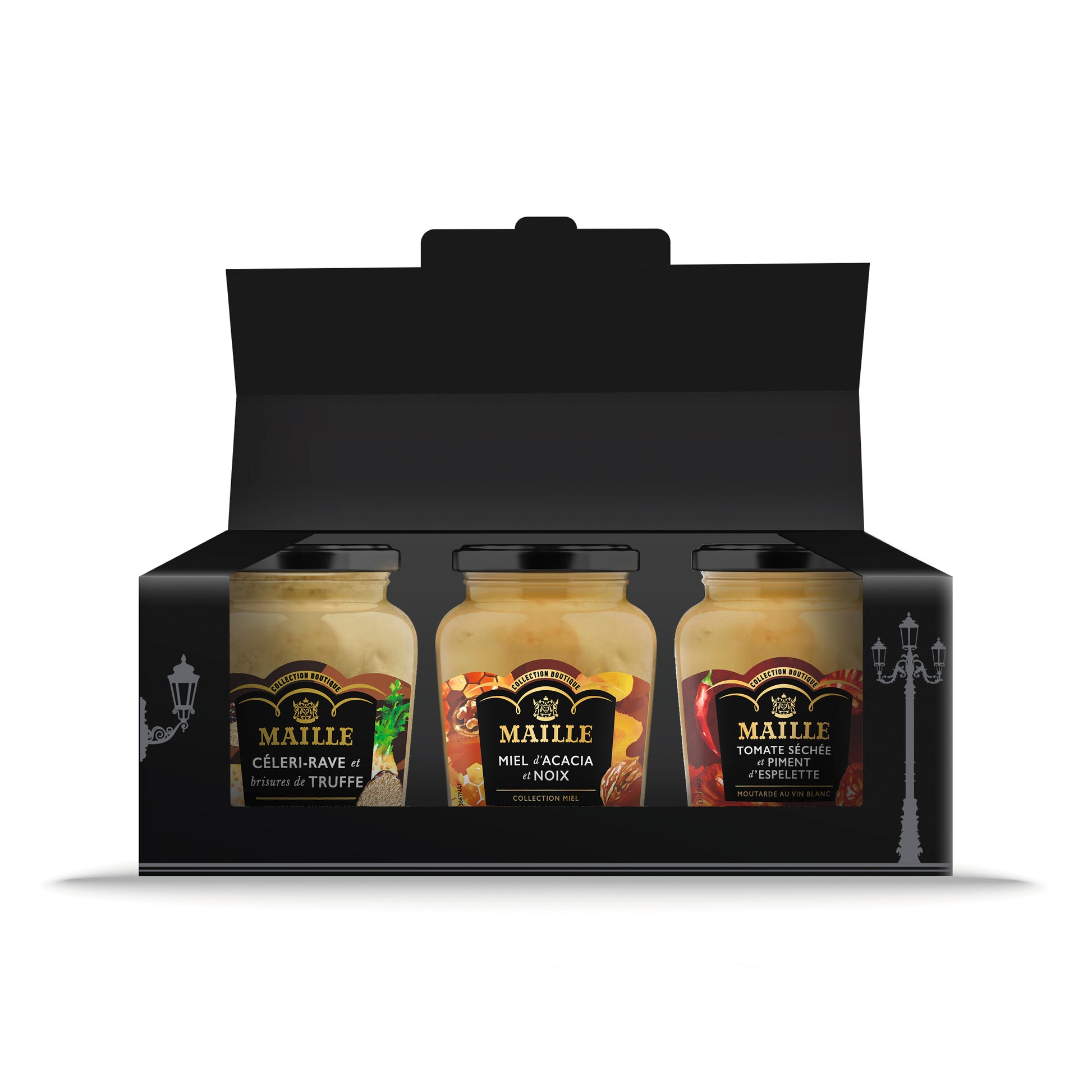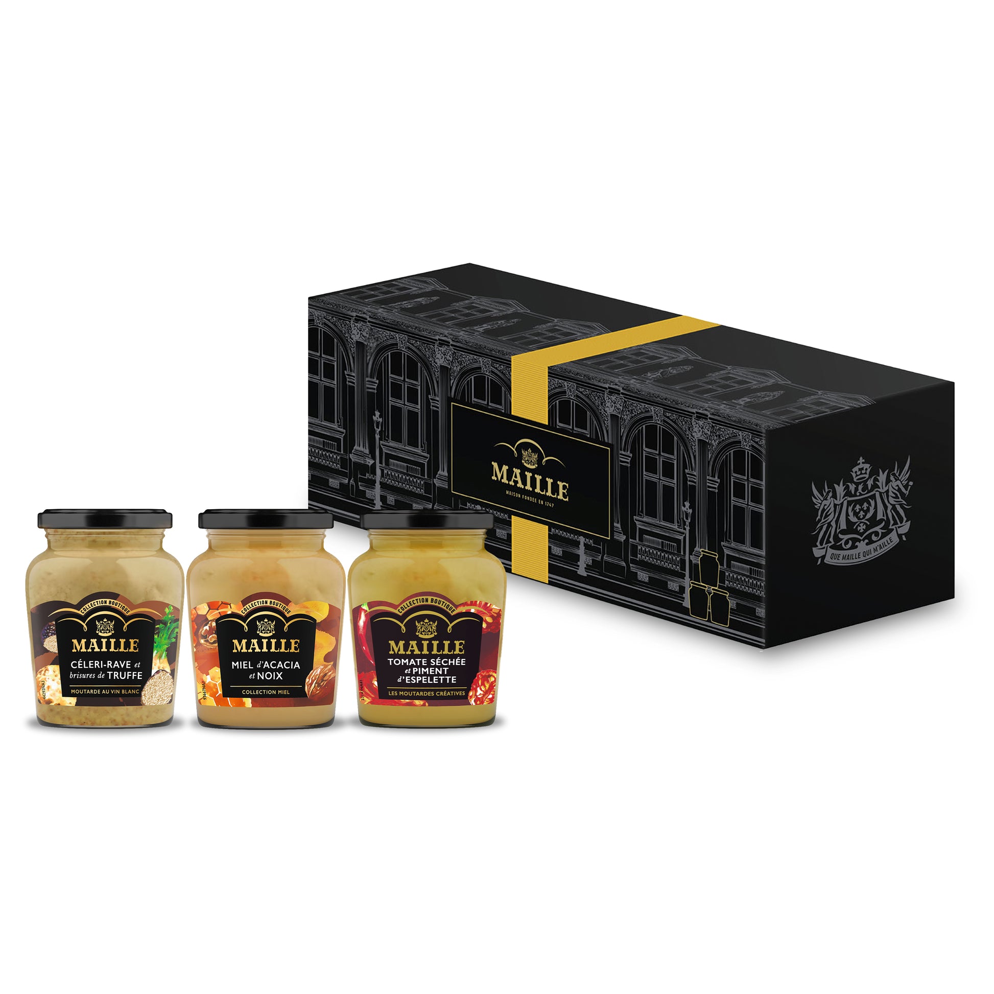 Le Coffret Marinades de la Maison Maille est une sélection exquise de trois moutardes spécialement conçues pour rehausser vos marinades. Ce coffret est parfait pour les amateurs de cuisine qui souhaitent ajouter une touche de sophistication à leurs plats.