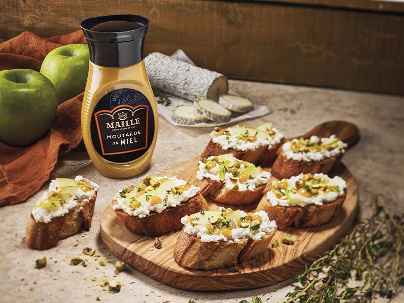 Une alliance subtile entre la douceur du miel et la force de la moutarde. Elle accompagne à merveille un filet de poulet, un fromage affiné ou un bagel gourmet.