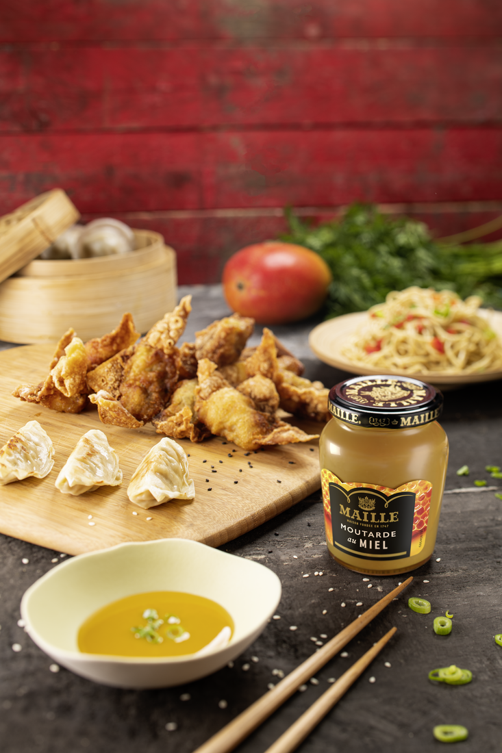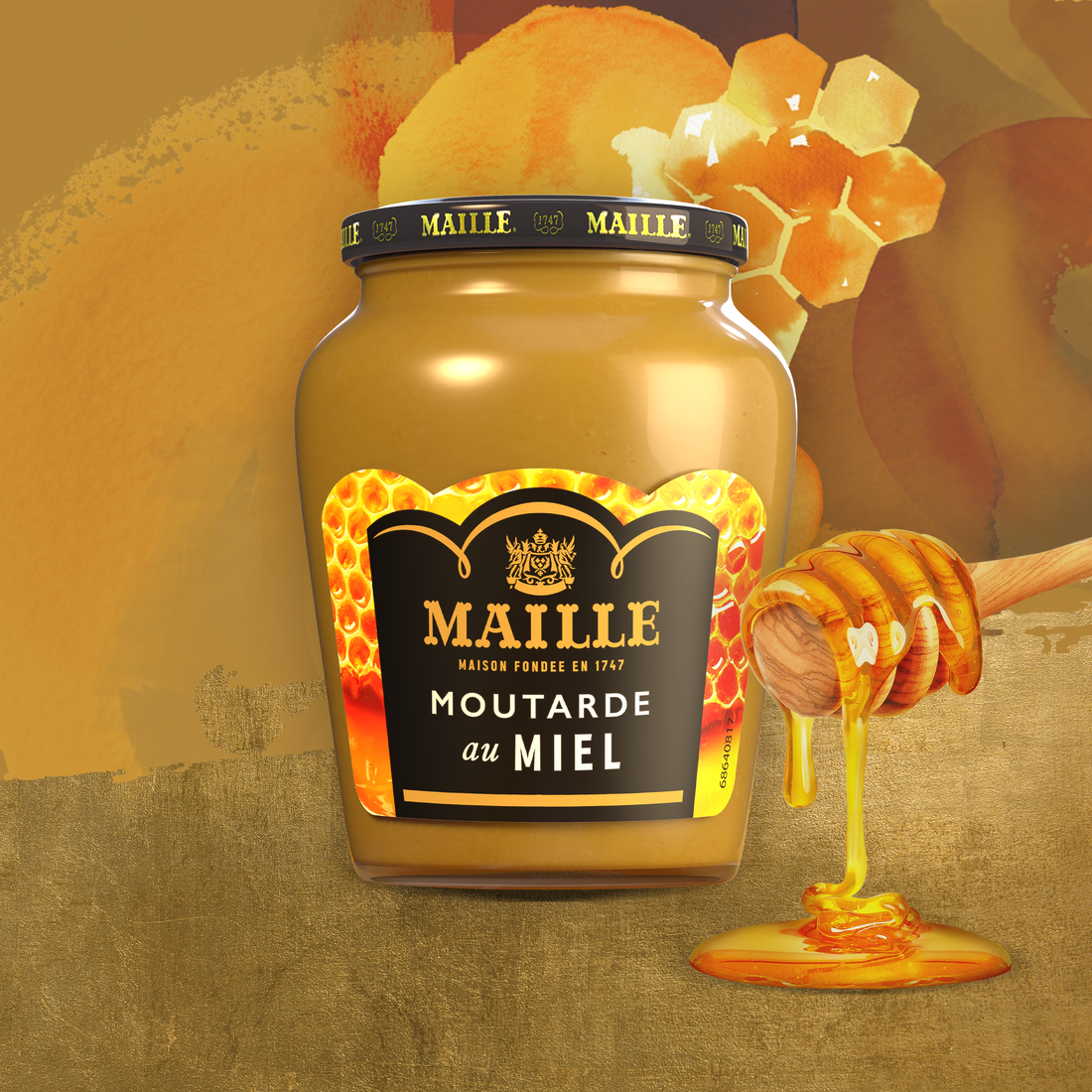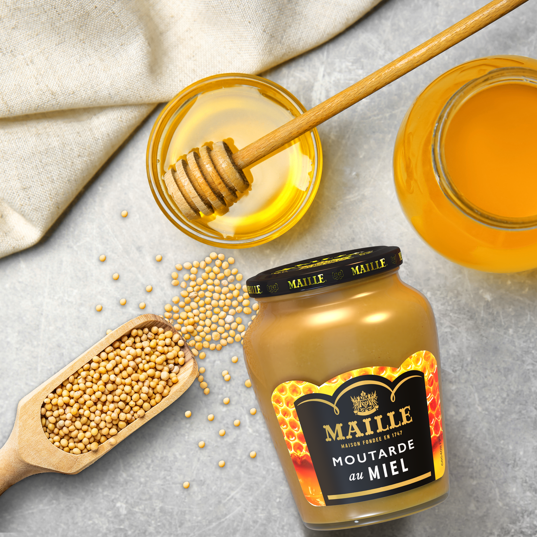 Les passionnés de cuisine ajoutent souvent une cuillère de miel à leur base de vinaigrette classique. Cette recette de moutarde douce recèle ce supplément d’âme qui, au-delà du simple assaisonnement, apportera une note acidulée à vos assiettes de fromage et du « peps » à vos salades de fruits. Depuis près de 270 ans de tradition créative et de savoir-faire, Maille est la touche qui réveille et révèle la beauté d'un plat. Une touche de créativité qui exacerbe le goût, accroît le plaisir et comble les gourmets les plus exigeants… Les produits Maille invitent à un voyage dans le monde des saveurs. Avec comme passagers de choix : la passion du détail, l’art de la nuance et le raffinement.