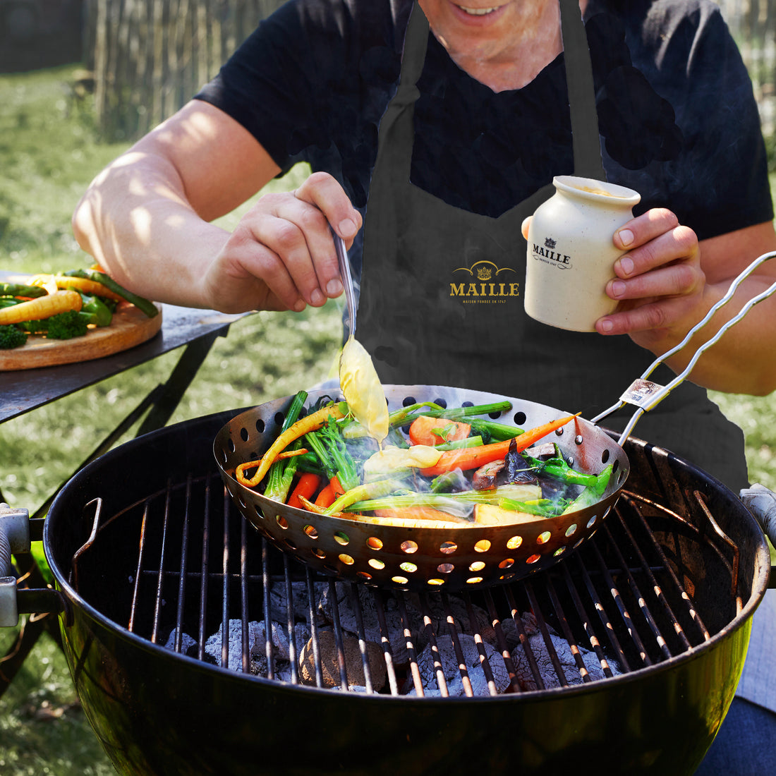 - Les tabliers de la Maison Maille vous accompagneront dans la réalisation de toutes vos créations culinaires.