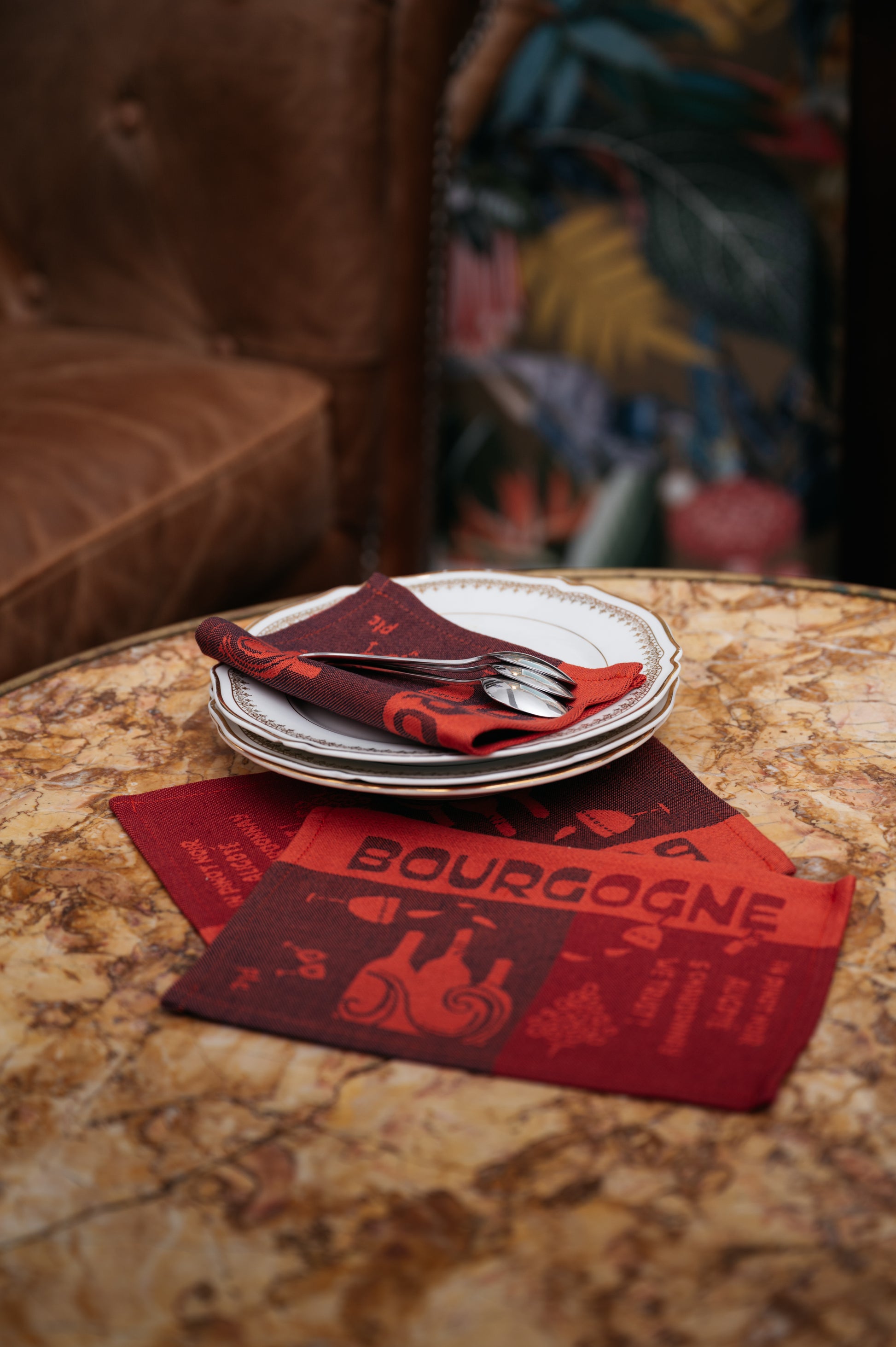 - Ce linge de maison Bourgogne a été tissé dans le Sud-Ouest de la France, sur un ancien métier Jacquard.